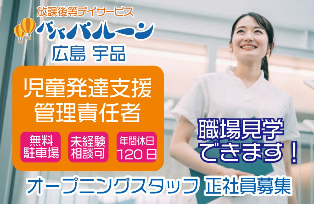 放課後等デイサービス バババルーン広島宇品 月給230,000~308,000 正社員 広島県広島市南区 求人情報を見る