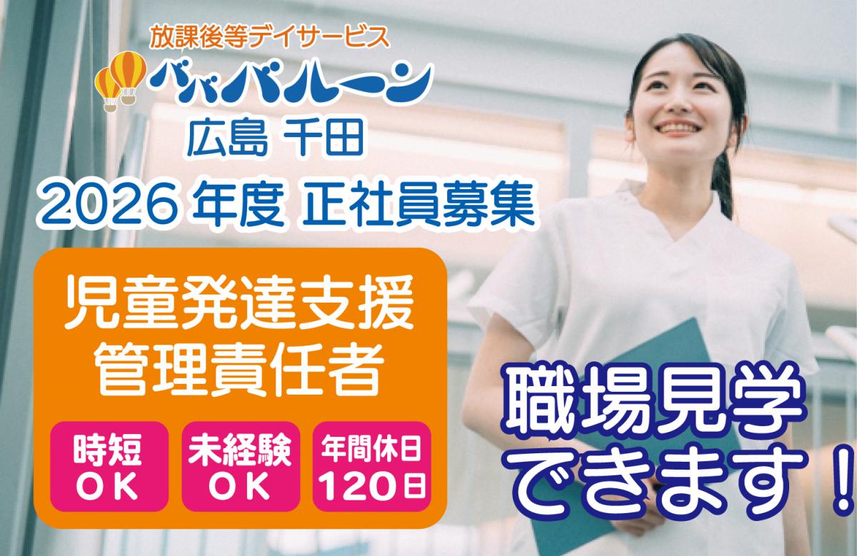 「放課後等デイサービスバババルーン広島千田店」で教員を募集します。